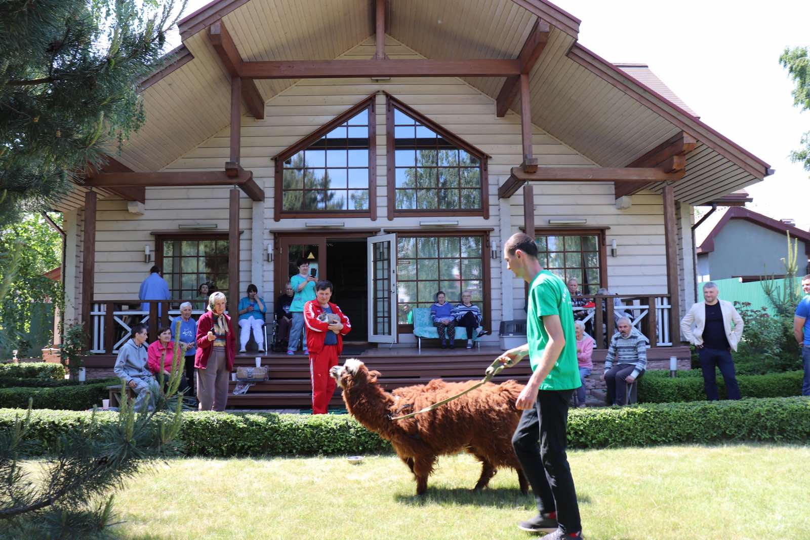 Пансионат - это большой, светлый дом с просторными помещениями, где созданы все условия для удобства инвалидов, включая пандусы, лифты и специально оборудованные комнаты.